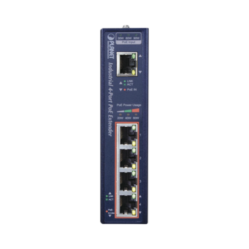 Extensor Industrial PoE, Entrada PoE 802.3 bt y 4 Puertos de Salida Gigabit 802.3 af/at