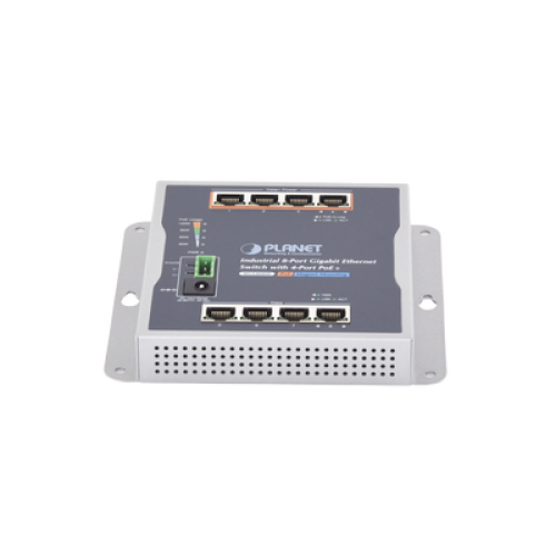 Switch Industrial No Administrable, Múltiple Montaje (Pared, Riel DIN y Magnético), 8 Puertos Gigabit con 4 puertos PoE 802.3at, Hasta 120 W.