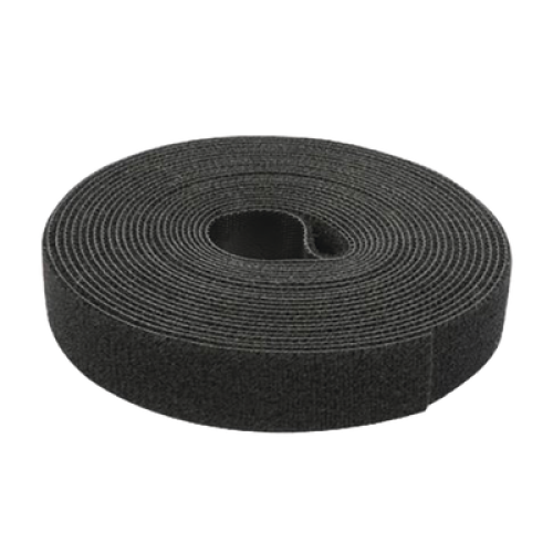 Cinta de Contacto Autoadherente Color Negro / 1.6 cm x 25 metros / Espalda con Espalda (Gancho y Bucle)