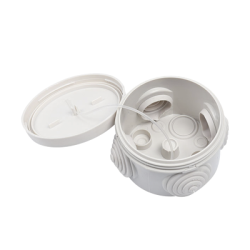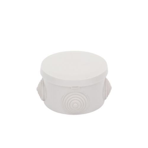 Caja Derivación-Conexión de Plástico Circular con 4 Glándulas de Goma (70 diámetro X 48 alto mm). Para Instalaciones Comerciales, Residenciales e Industriales. Cerrado a Presión.