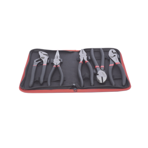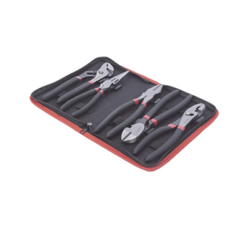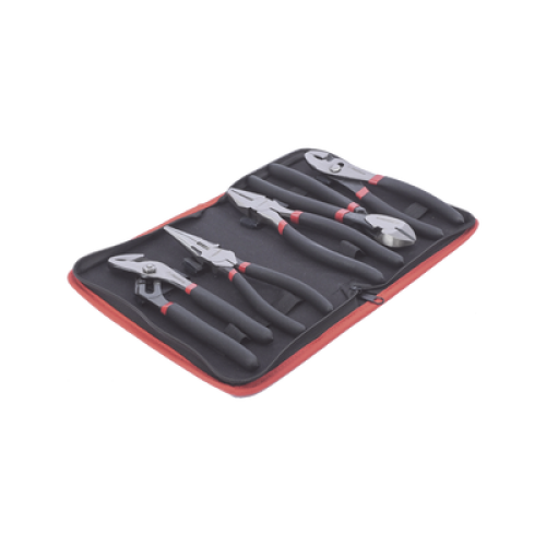 Juego de 5 Pinzas de 8" con Estuche. Incluye: P. Mecánica, P. para Tubo, P. Eléctrica, P. Corte, Nariz Larga.