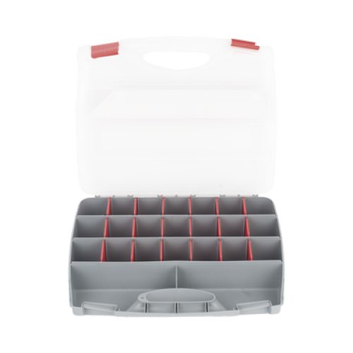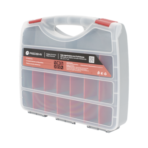 Caja Organizadora con 21 Divisiones Fabricada en Plástico de Alta Resistencia de 38x31x7 cm.