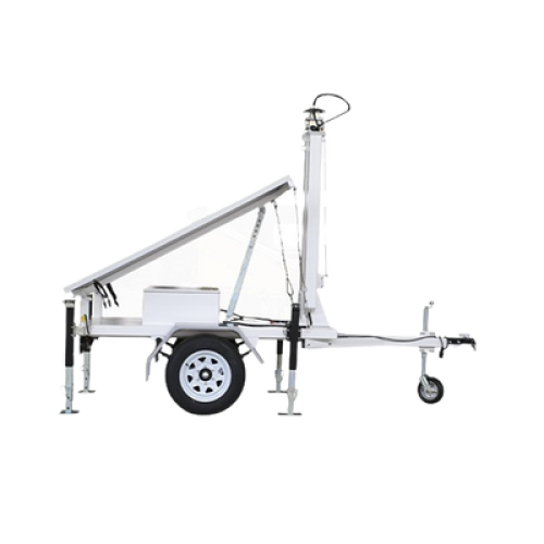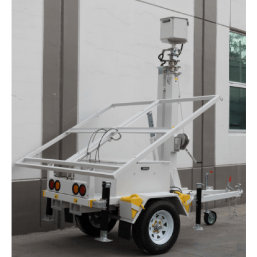 Traila / Remolque con Mástil Retráctil de 7.5 m. para Videovigilancia o Iluminación, con capacidad para Instalar Módulos Solares y Baterías (No incluidos)