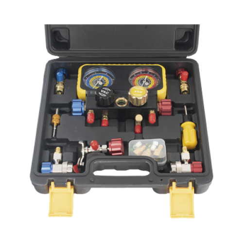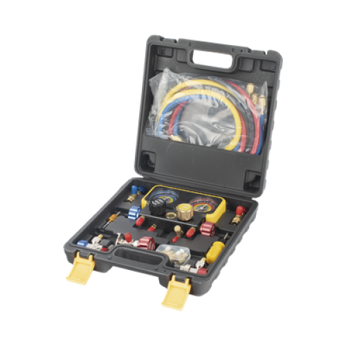 Manómetro de 4 vías con Accesorios para Gas refrigerante R410A/ R32/ R134A/R22