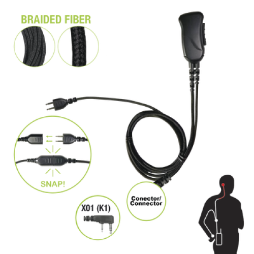 Cable de fibra trenzada serie SNAP compatible con KENWOOD conector de 2 pines para auricular