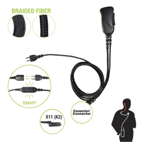 Micrófono con cable de fibra trenzada serie SNAP compatible con KENWOOD conector Multipin.
