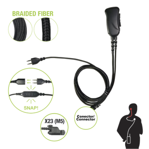 Micrófono con cable de fibra trenzada serie SNAP compatible con conector Motorola Serie Jedi.