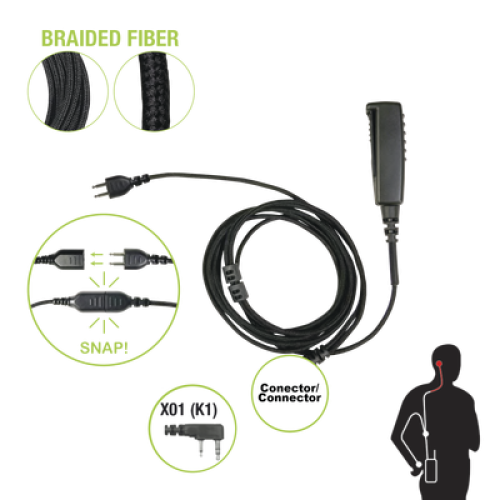 Cable para Micrófono audífono SNAP intercambiable con conector para Radios Kenwood con conector de 2 pines.