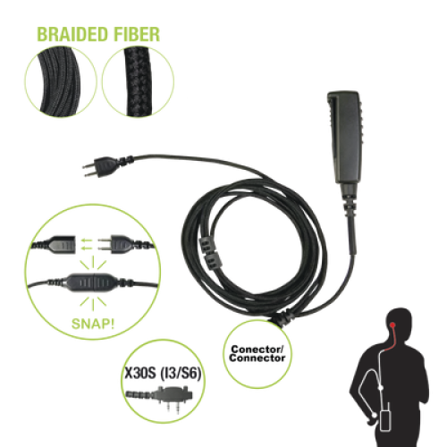 Cable para Micrófono audífono SNAP intercambiable con conector para Radios Icom con conector de 2 pines.