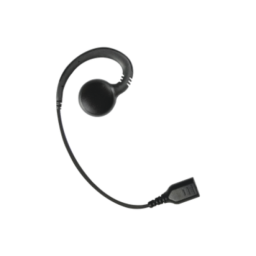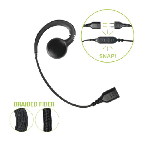 Auricular giratorio con gancho en forma de "G" con cable de fibra trenzada y conector SNAP. Requiere micrófono de solapa de 1 o 2 hilos de la Serie SNAP.