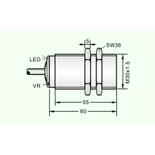 Sensor de Proximidad Capacitivo M30 / DC 3 Hilos PNP N.O. / Distancia Detección 10 mm / Montaje Embedido Apantallado / IP67 / Protección Cortocircuito y Polaridad Inversa / Cable 2 Metros