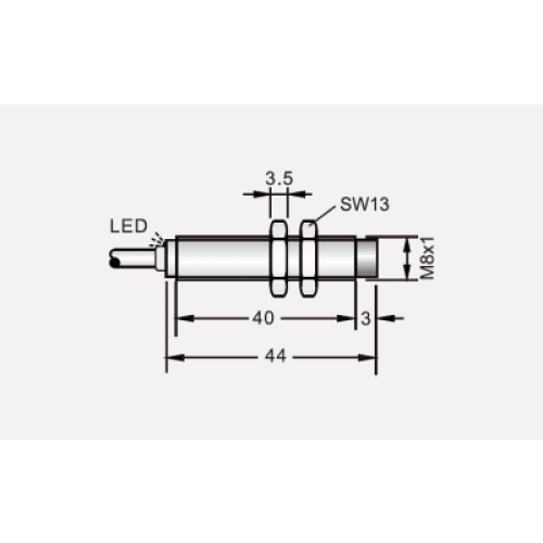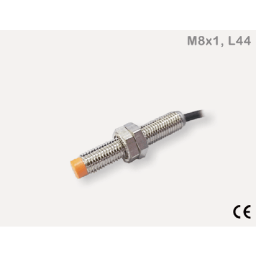 Sensor Inductivo de Proximidad Cilíndrico IBT8-N02PA-D3Y2 / M8 8x8x44 mm / Cable 3 Hilos 2M / PNP N.O. / Rango Detección 2 mm / IP67 / −25...+70°C