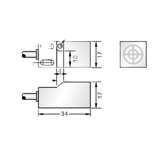 Sensor Inductivo / Perfil Plano Rectangular 17x17 mm / Distancia 8 mm / No Rasante / IP67 / PNP N.O. / 12-24VCC / 400 Hz / Protección Completa
