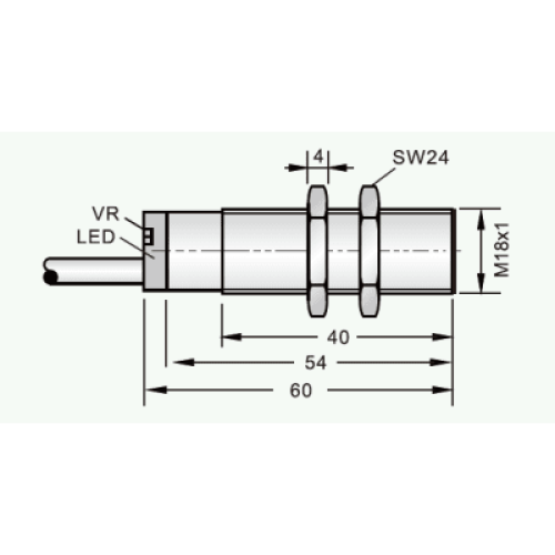 Sensor Fotoeléctrico de Proximidad Cilíndrico / M18 / Distancia de Detección 100 mm / Modo Reflexión Difusa / Salida PNP N.O. / 3 Cables / IP66 / Protección Contra Cortocircuito y Polaridad Inversa / Rango Voltaje DC 12-