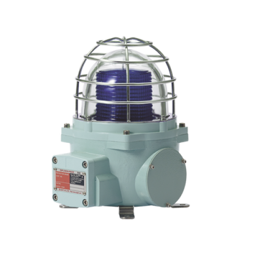 Baliza con luz LED color Azul con patrón de destello fijo o flasheante, ideal para zonas y áreas peligrosas, opera en un rango de 12-24 VCD