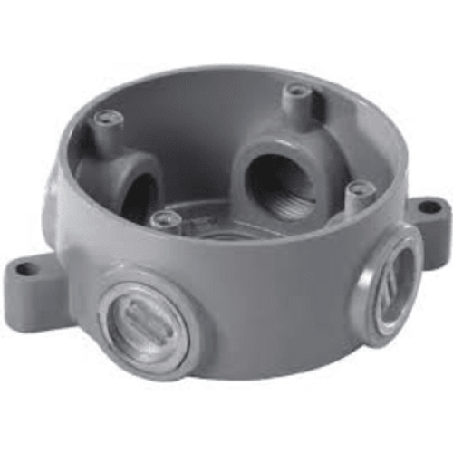 Caja Redonda Estándar sin Tapa a Prueba de Intemperie 102(4) de 3/4" (19 mm) / Con 5 salidas.