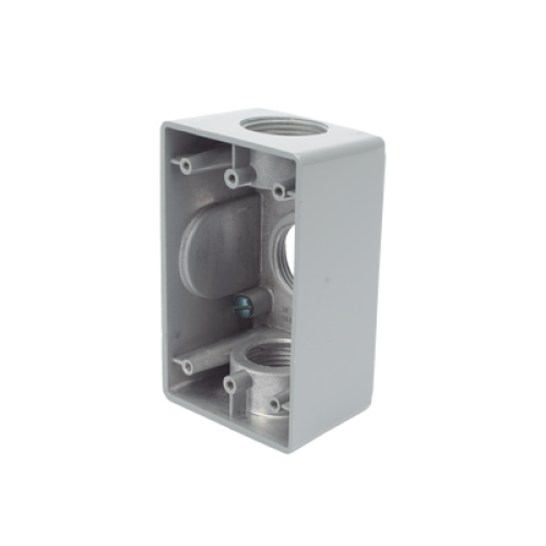 Caja Condulet FS de 1" (25.4 mm ) con tres bocas una arriba y una atrás a prueba de intemperie.
