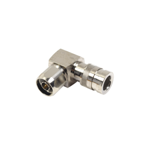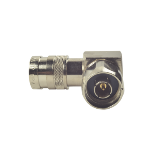 Conector N Macho de Compresion, Angulo Recto para LMR-400, CNT-400, Bronce-Blanco /Oro /Teflón.