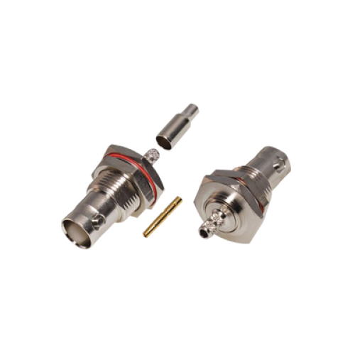 - Conector BNC Hembra / Chasis en D-Plano, Anillo Plegable / RG-316/U, Niquel/Oro/Teflón.
