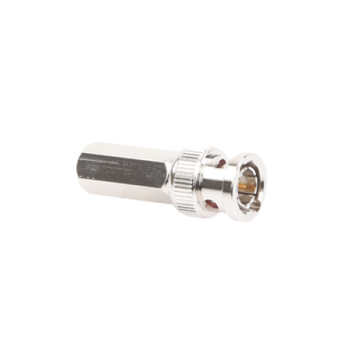 Conector BNC Macho de Ensamble Roscable (Hex.) en Sentido de las Manecillas de Reloj para Cable Coaxial RG-59/U, Níquel/ Oro/ Delrin.