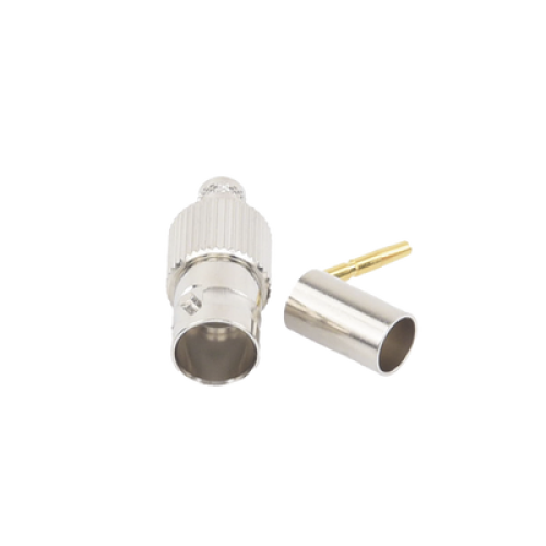 Conector BNC Hembra, 75 Ohm, Anillo Plegable, para RG-59/U, Níquel/ Oro/ Delrin.