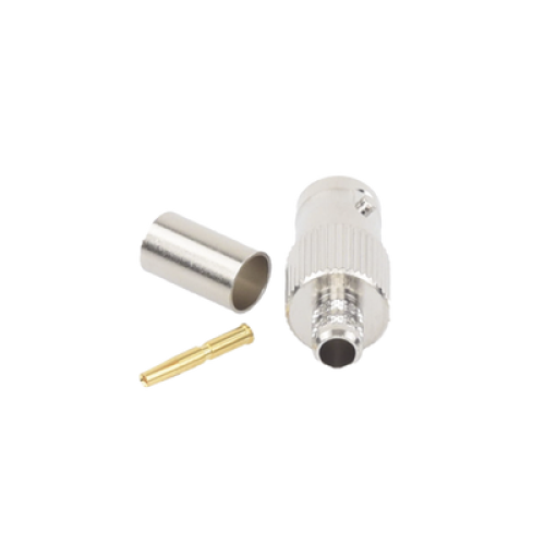 Conector BNC Hembra, 75 Ohm, Anillo Plegable, para RG-59/U, Níquel/ Oro/ Delrin.