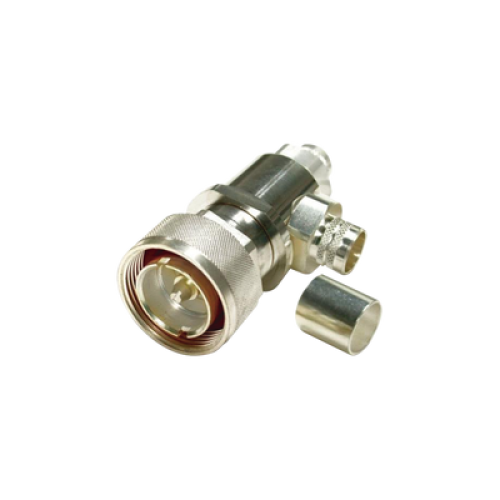 Conector DIN 7-16 Macho tipo COMBO, Recto o Ángulo Recto, de Anillo para LMR-600, Plata/ Plata/ Teflón.
