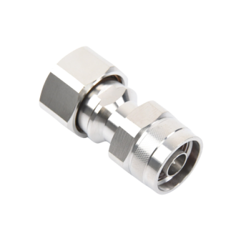 Adaptador en Línea de Conector 4.3-10 Macho a N Macho, Bronce Blanco/ Plata/ Teflón.