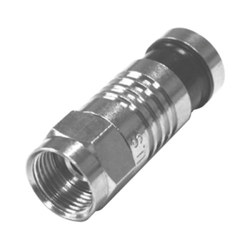 Conector F Macho Plegado Axial por Compresión para RG-59/U, Cuerpo en Níquel y Banda Negra.