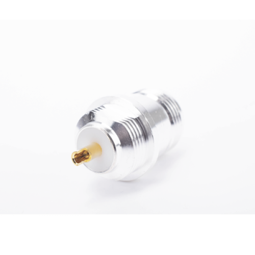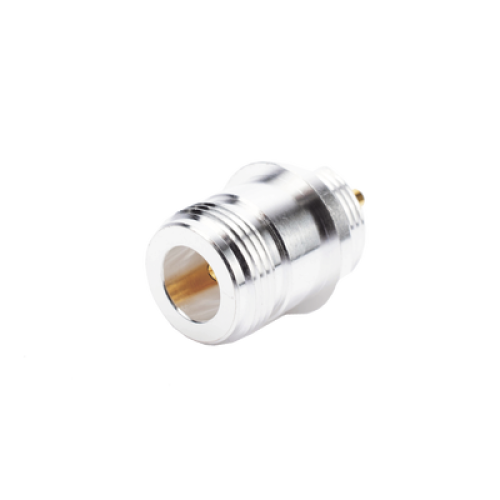 Conector N Hembra, para Montaje Frontal en Panel, Doble D Plano, Plata/ Oro/ Teflón.