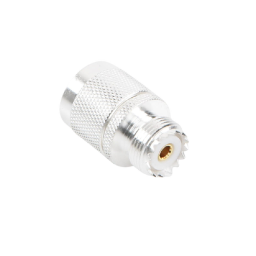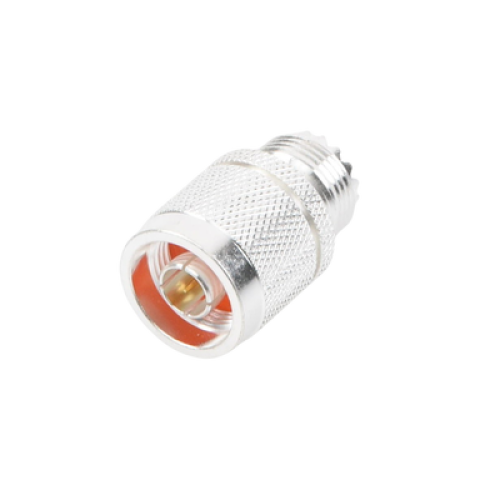 Adaptador en Línea, de Conector N Macho a UHF Hembra (SO-239), Plata/ Oro/ Teflón.