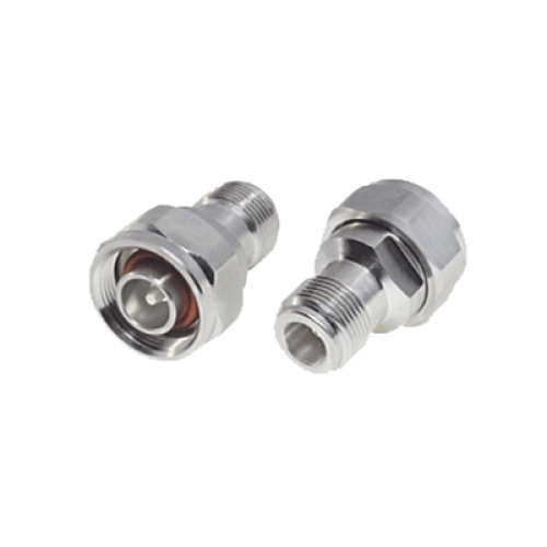 Adaptador en Línea, de N Hembra a (Mini) DIN 4.1-9.5 Macho, PIM -155 dBc, Bronce Blanco/ Plata/ Teflón.