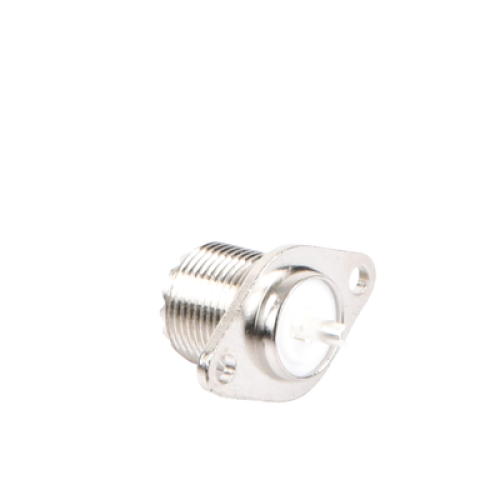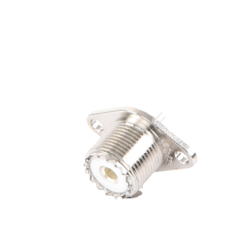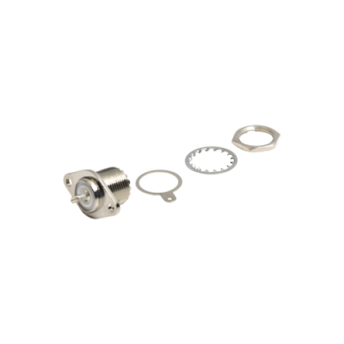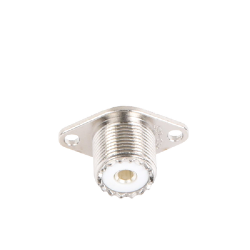 Conector UHF Hembra (SO-239-2H) para Chasis, Doble Perforación, Conductor Central Soldable, Níquel/ Plata/ PBT.