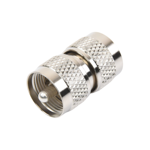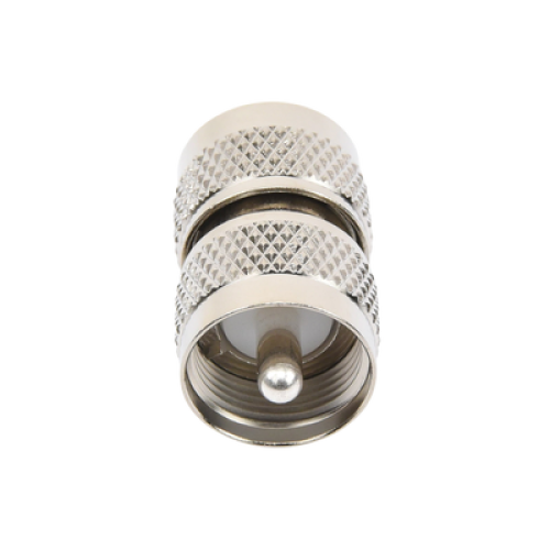 Adaptador Barril en Línea, de Conector UHF Macho (PL-259) a UHF Macho (PL-259), Níquel/ Plata/ Teflón.