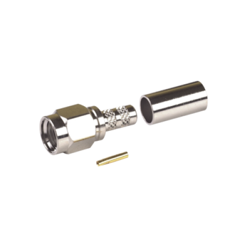 Conector SMA Macho Inverso, de Anillo Plegable para RG-58/U, Niquel /Oro /Teflón.