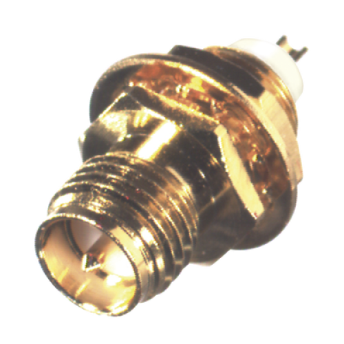 Conector SMA Hembra Inverso de Montaje Frontal en Panel, D-Plano, Soldable, Oro/ Oro/ Teflón.