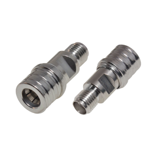 Adaptador en Línea de Bajo PIM, de Conector QMA (Quick Mate) Macho a SMA Hembra, Bronce Blanco/ Oro/ Teflón.