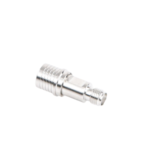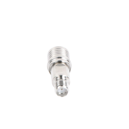 Adaptador en Línea de Bajo PIM, de Conector QMA (Quick Mate) Macho a SMA Hembra, Bronce Blanco/ Oro/ Teflón.