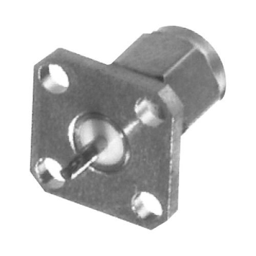 Conector SMA Macho de Montaje en Panel de 4 Perforaciones y Terminal Soldable, Níquel/ Oro/ Teflón.​