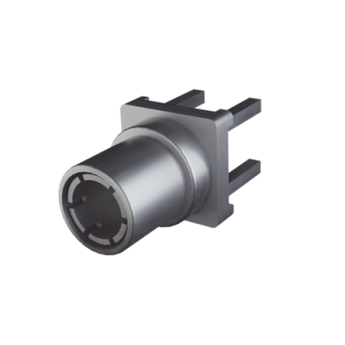 Conector Mini SMB Macho (PIN Hembra) Montaje Vertical para PCB, 75 Ohm, Oro/ Oro/ Teflón.