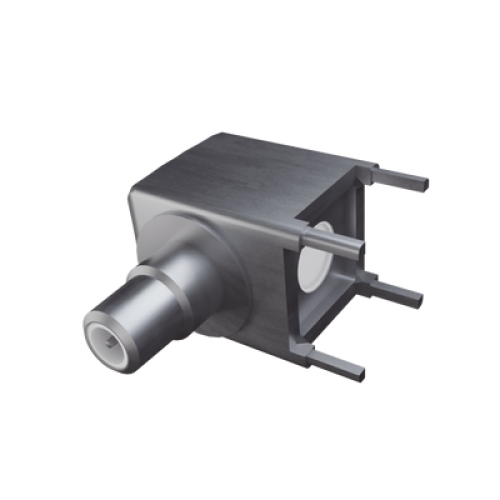 Conector SMB Hembra (PIN Macho) en Ángulo Recto para Montaje en PCB, 4 Patas, Níquel/ Oro/ Teflón.​