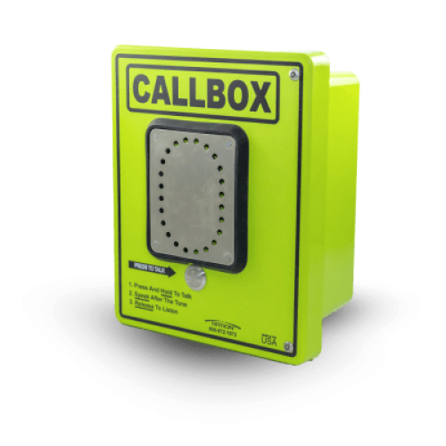 Callbox HD Series / Intercomunicador Bidireccional / 800mW-2W Potencia Transmisión / Audio Ajustable / Enclosure Fibra de Vidrio / Vandal-Resistente / IP65 / Mensajes de Voz Grabables / Control de Acceso por Relay / Sensor Input