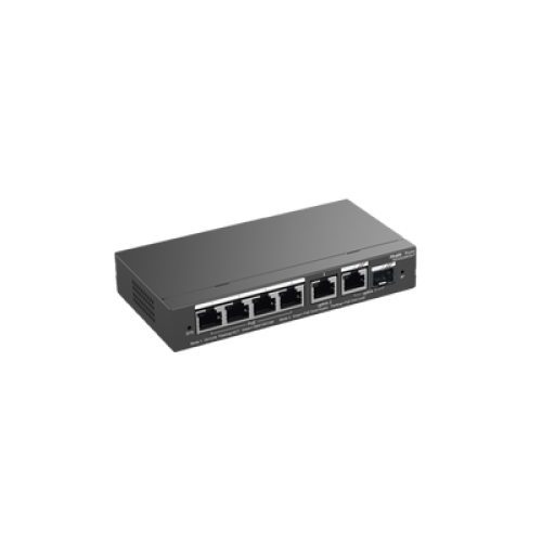 Switch Administrable con 4 puertos Gigabit PoE, 2 Uplink Gigabit y 1 Uplink Gigabit para Fibra SFP en combo, gestión gratuita desde la nube