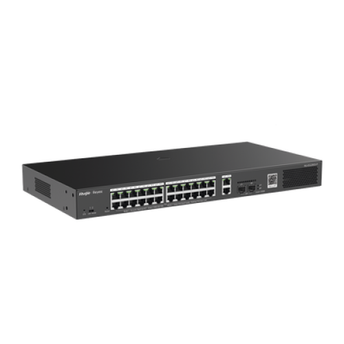 Switch Smart PoE con 24 puertos Gigabit PoE 802.3af/at + 2 SFP para fibra 1Gb, gestión gratuita desde la nube, 370w