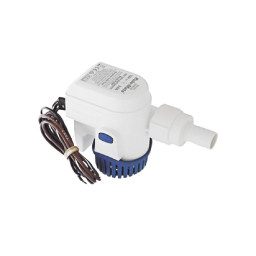 Bomba sumergible de achique automatizada de 800 galones por hora, para conexión de 12 Volts de corriente directa.