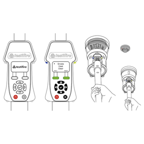 Probador avanzado Testifire 3 en 1 para detectores de humo, temperatura fija, tasa de crecimiento, hasta 100ºC y monóxido de carbono CO