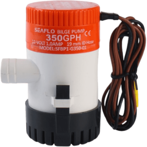Bomba de Achique Eléctrica Marina Sumergible SEAFLO 12V / 350 GPH (1325 LPH) / No Automática / Protección Anti-Aire / Sellos Herméticos / Cableado Marino / Base de Filtro Removible