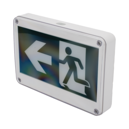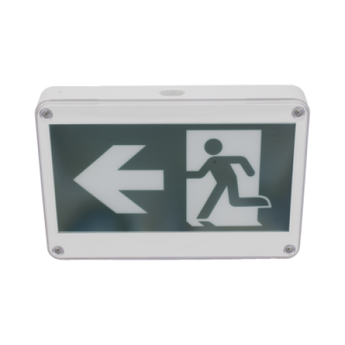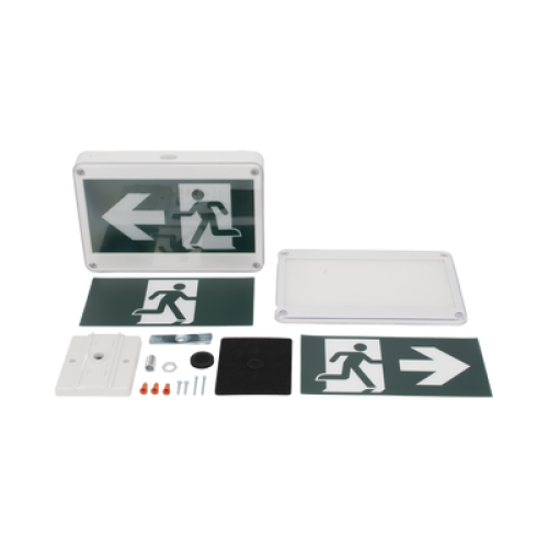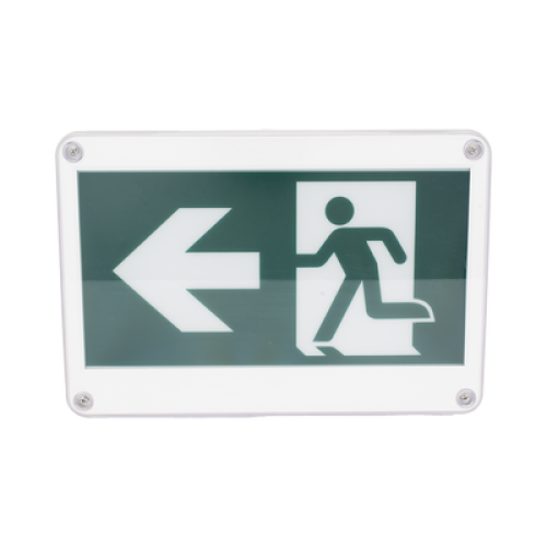 Letrero EXTERIOR de Señalización salida "Hombre Corriendo"/ Alto brillo / Uso en pared, lateral o techo / Batería de Respaldo Incluida con hasta 120 minutos de duración