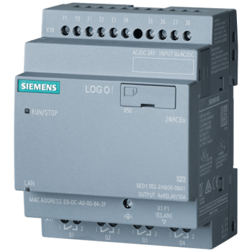 Módulo Lógico LOGO! 24RCEO (AC) / 24 V DC/24 V AC/Relé / 8 DI/4 DO / Sin Display / Memoria 400 Bloques / Expansible / Ethernet / Web Server Integrado / Data Log / Web Pages Personalizables / microSD / Soporte MQTT / Cloud