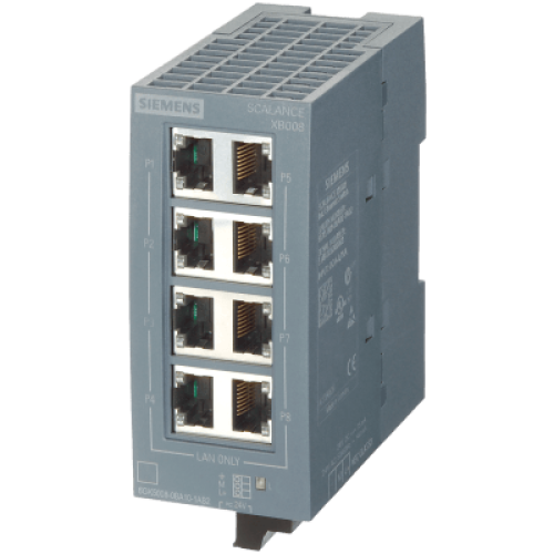 Switch Industrial No Gestionado SCALANCE XB008 / 8 Puertos 10/100 Mbit/s RJ45 / IP20 / 24V AC/DC / Montaje DIN Rail y Pared / PRP / CoS / PROFINET Clase A